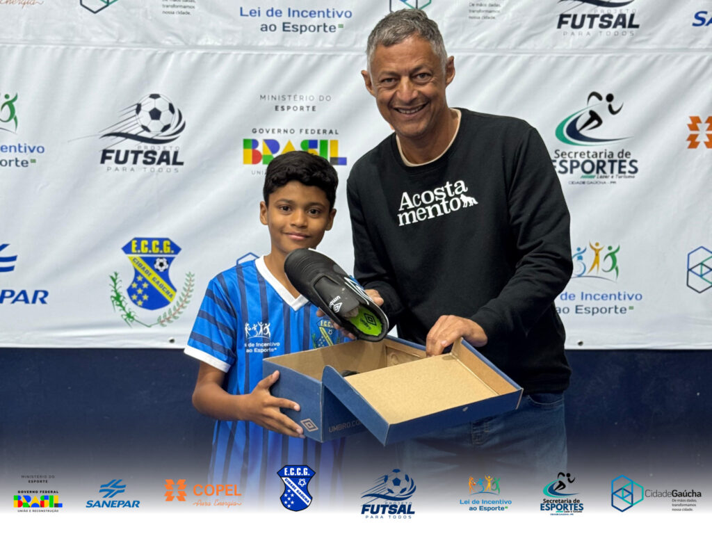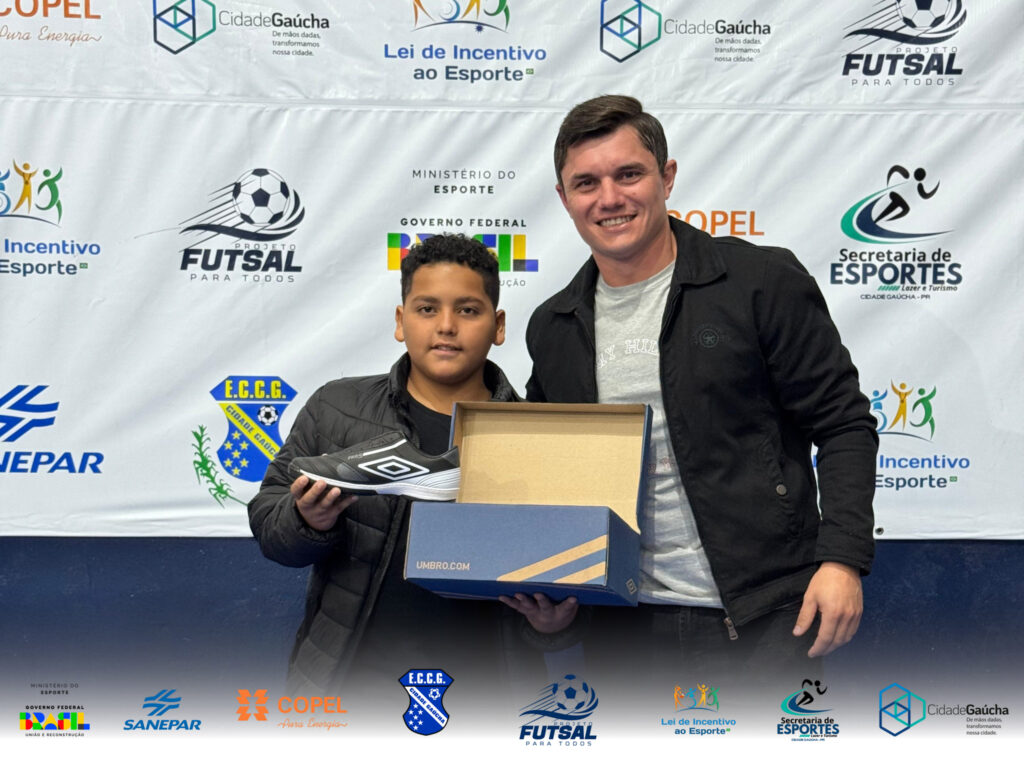 Além do jogo, a noite foi marcada por um momento especial para os atletas: a entrega oficial dos novos pares de tênis do projeto Futsal para Todos, uma iniciativa viabilizada com recursos do Governo Federal. O projeto visa fomentar o esporte e garantir melhores condições de treino e competição para os jovens talentos do município.
